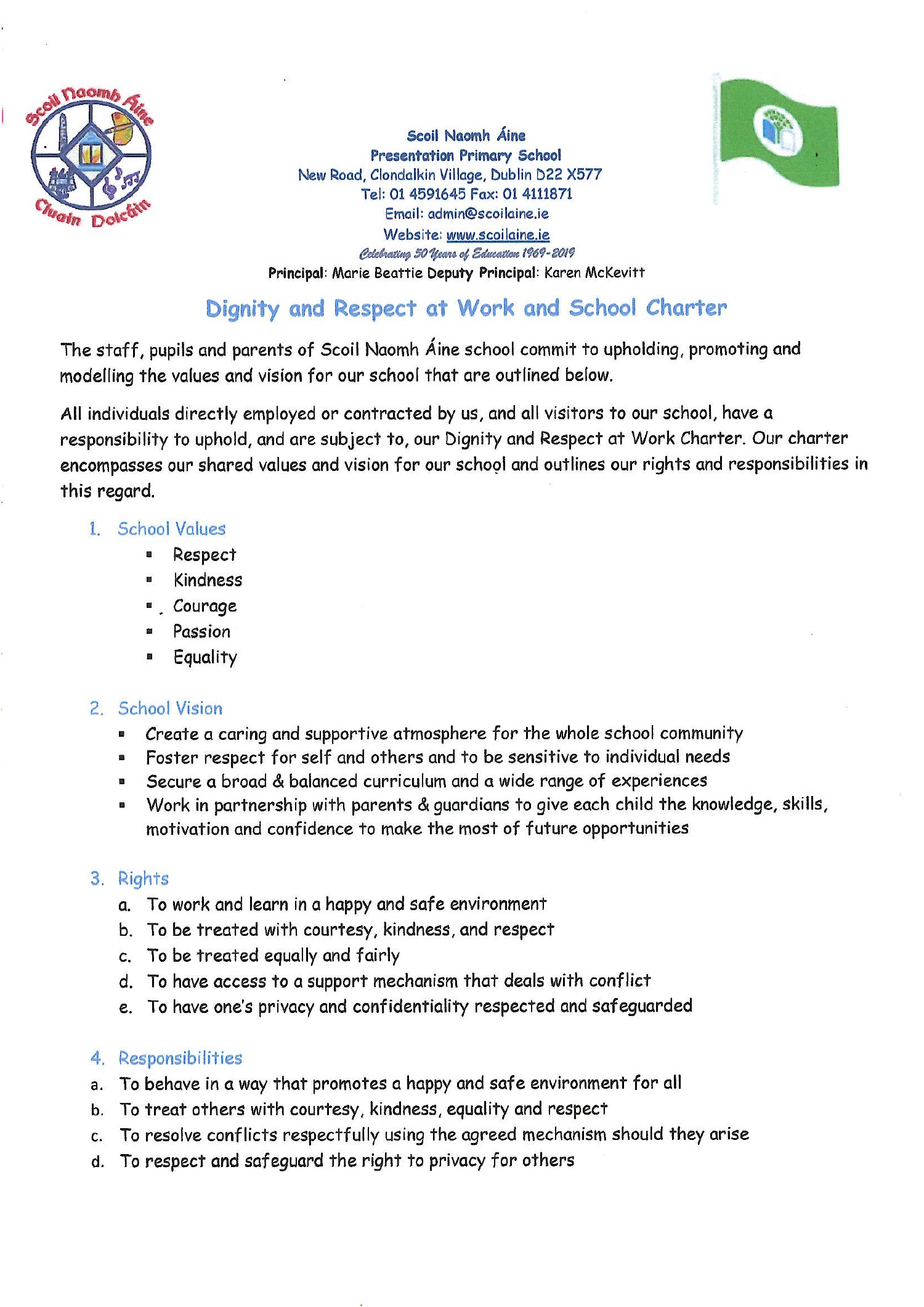 Scoil Naomh Áine, Clondalkin is a Catholic School which aims to: